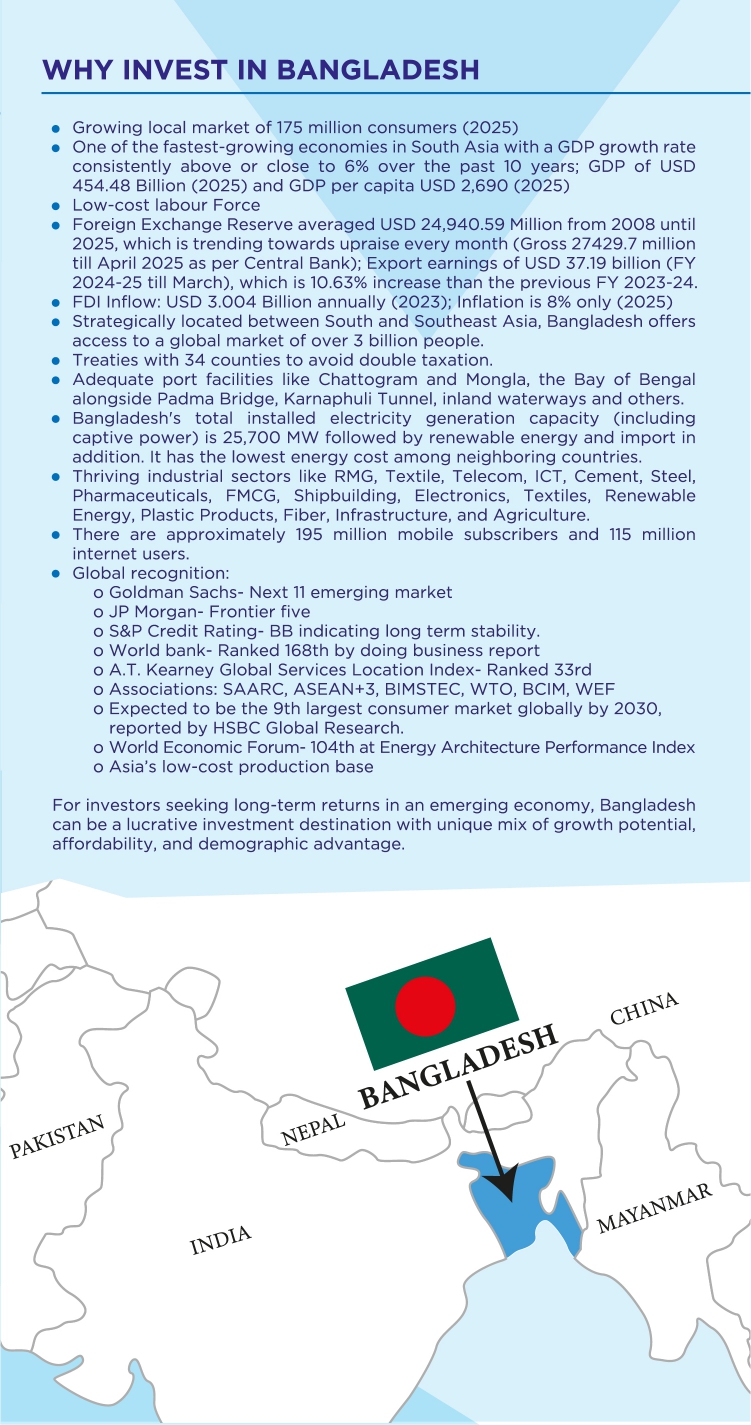Meghna Industrial Economic Zone (MIEZ) is located beside the Dhaka-Chittagong Highway, covering an area of 156 acres at Tripordi, Mograpara, under Sonargaon Upazila of Narayanganj District. MIEZ has been established as the most premium economic zone in Bangladesh, equipped with all the essential facilities, including uninterrupted electricity, gas, and water supply; CETP; CSTP with incineration; solid waste management; a centralized fire hydrant system; an on-site fire station; solar power and medical centre. It also offers modern amenities such as a supermarket, fine dining facilities, and a helipad. MIEZ is protected by a top-notch security system. Investors are warmly welcomed with a wide range of fiscal and non-fiscal incentives.